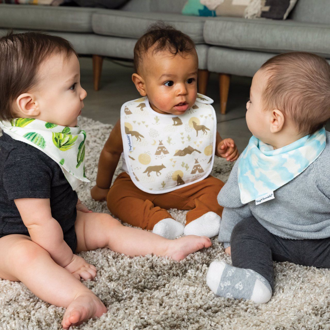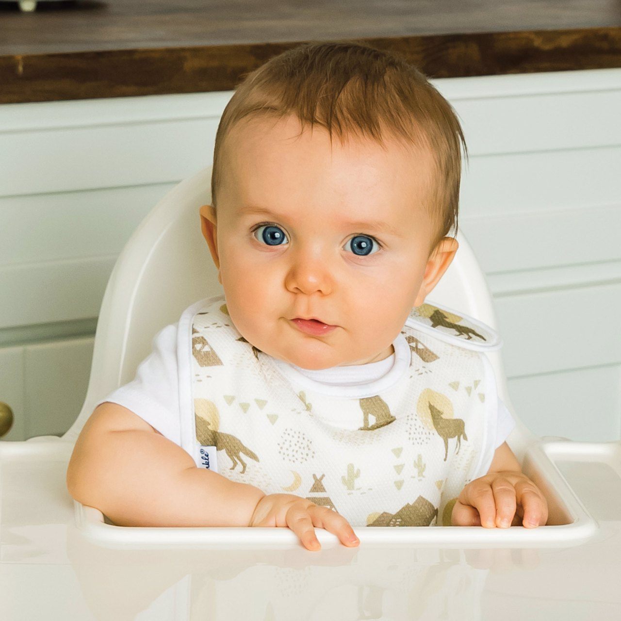 Absorbent and water repellent, our bibs soak up messes without soaking through!