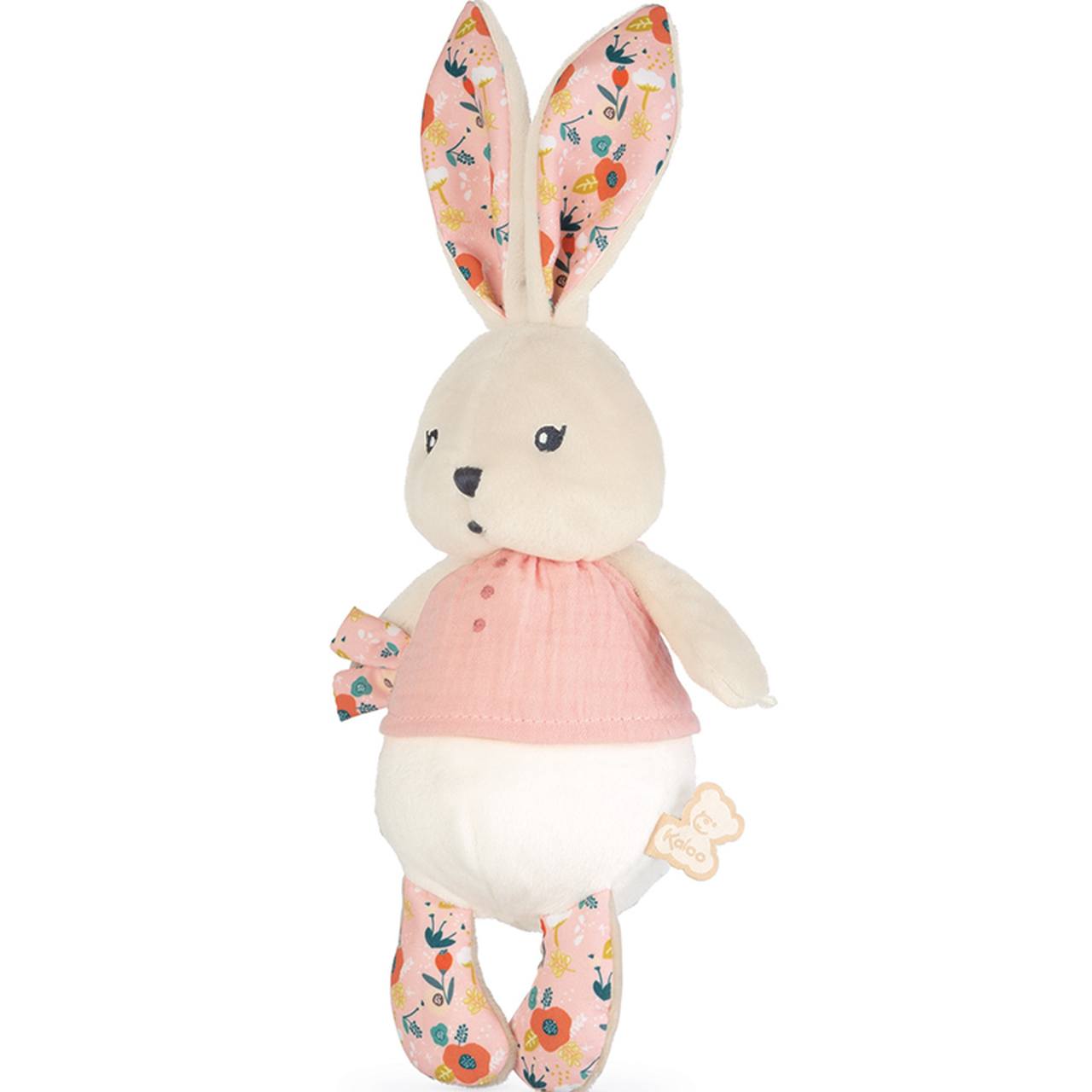 Babies will instantly love it in its muslin top, adorned with little embroidered buttons. Its ears and feet in peach fabric are printed with a fresh and dynamic poppy pattern.