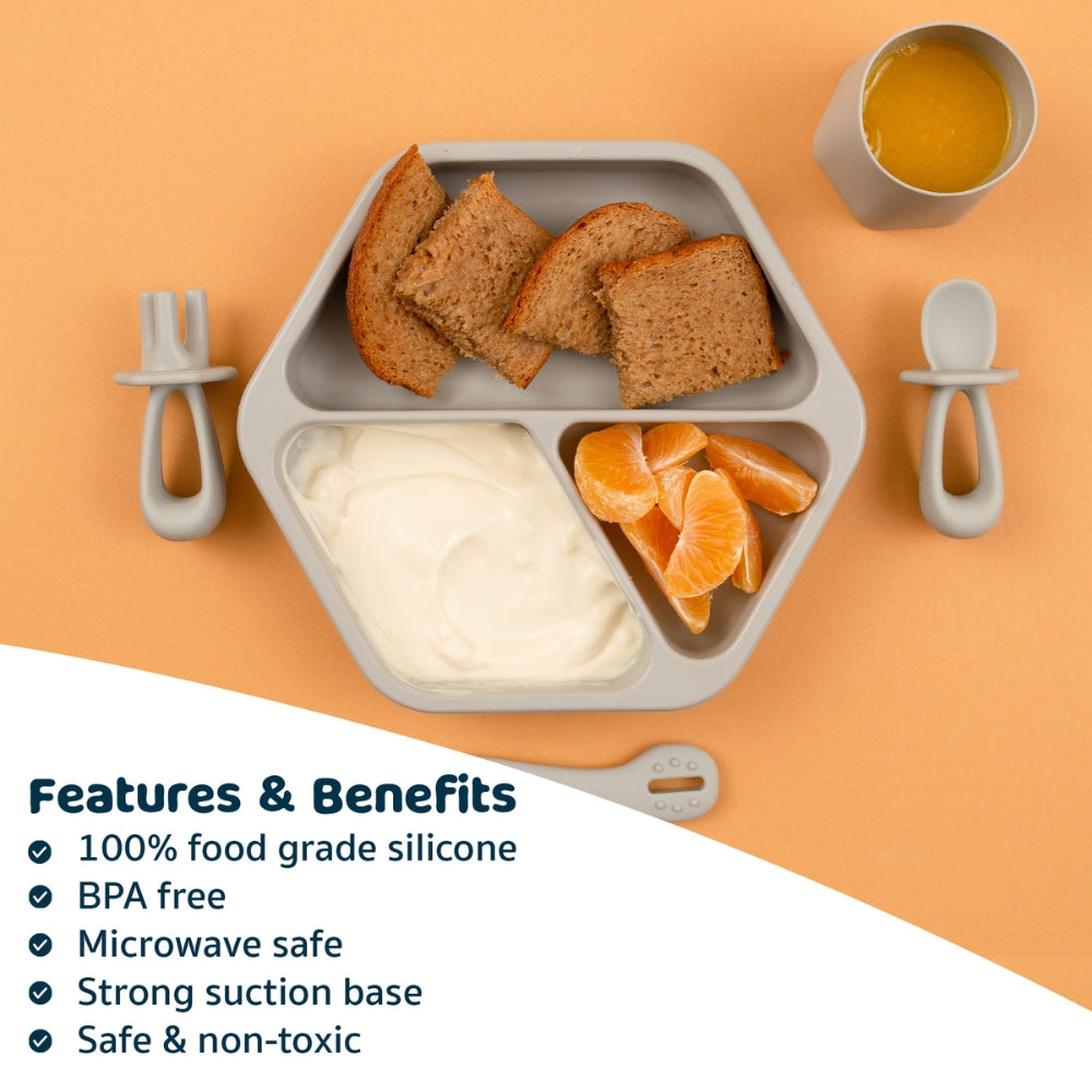 Tiny Twinkle - Silicone Plate and Lid Set - Grey