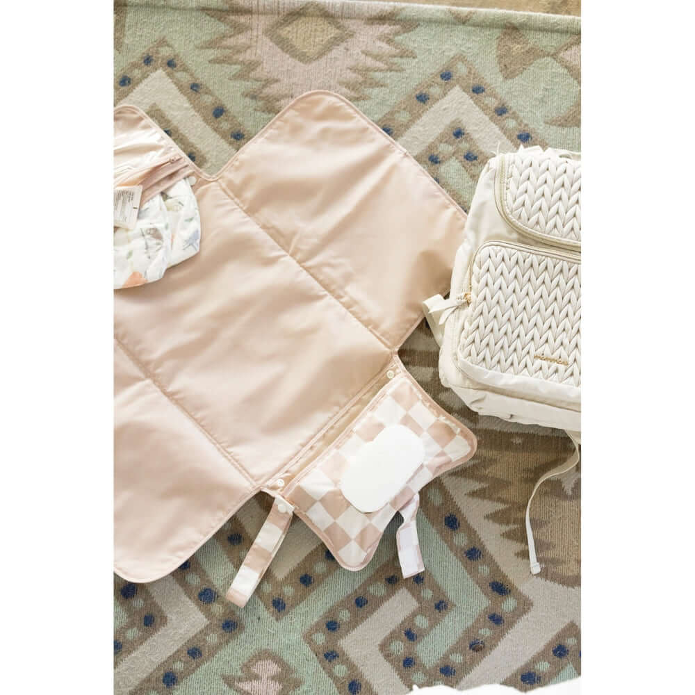 Tiny Twinkle - Portable Nappy Changing Pad - Beige Checkers