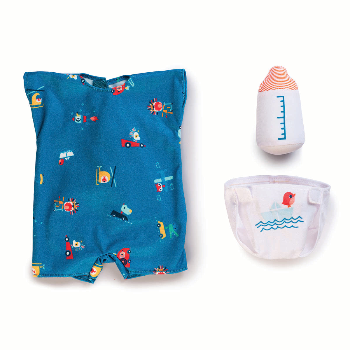 Kids will have a blast imitating mum or dad, as they care for this life-sized baby doll Noa. They'll be kept busy as they dress him, change his diaper and feed him. His bottle has a magnetic tip to keep it in place while he is having his milk and try taming that unruly hair! Noa will delight and entertain his new best friend and comfort when times are tough!
