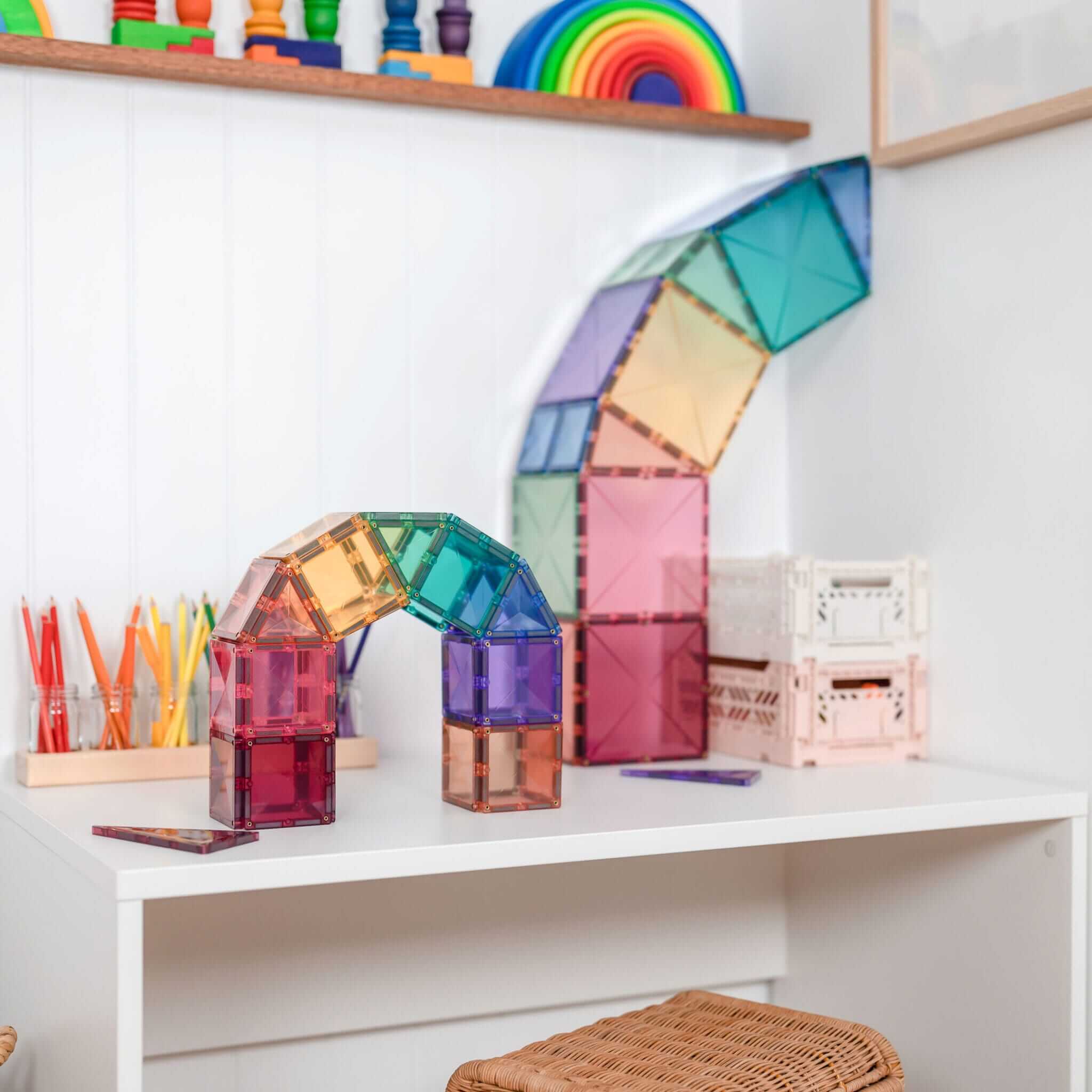 Experience STEAM learning with the Pastel Starter Pack as children of all ages explore magnetism, physics, symmetry, patterns and problem-solving. Discover the features of shapes and how they tesselate in both 2D and 3D creations. Enjoy our exclusive range of warm and cool pastel tones. Spark creativity and imagination as you design and construct houses, castles, car parks, robots or coin drops, plus so much more.