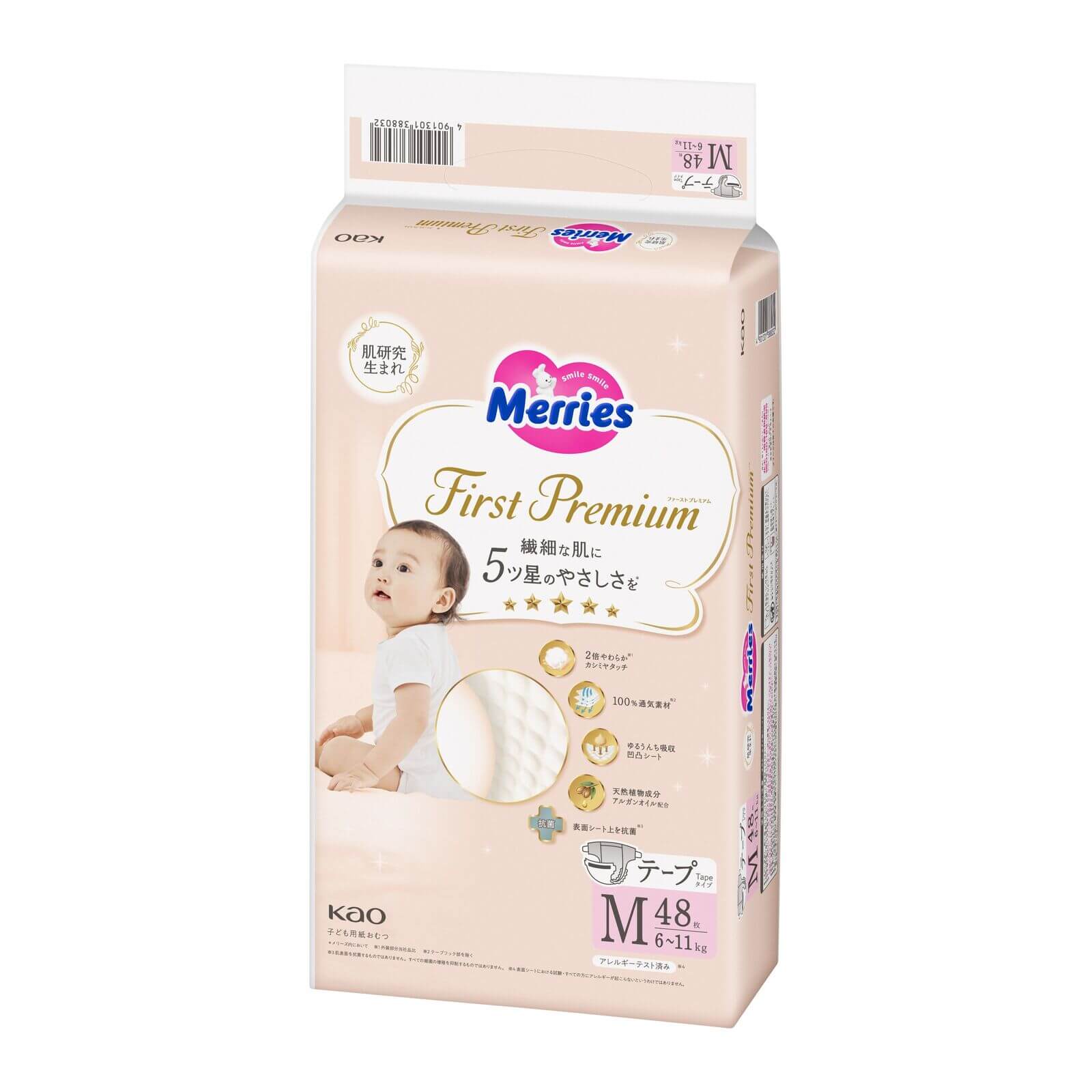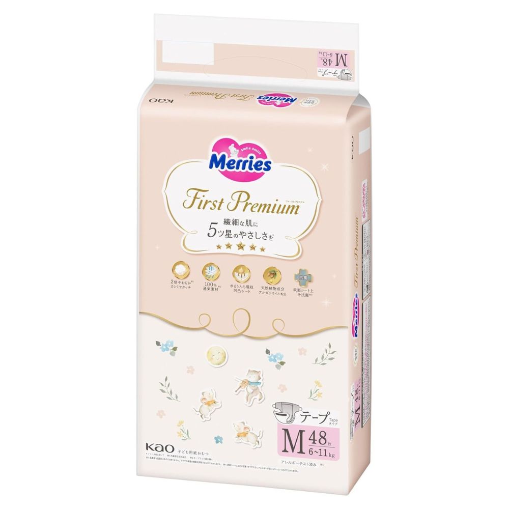 KAO Merries - First Premium - Medium Nappy Tape for 6-11Kg - Size M - 48 Pieces
