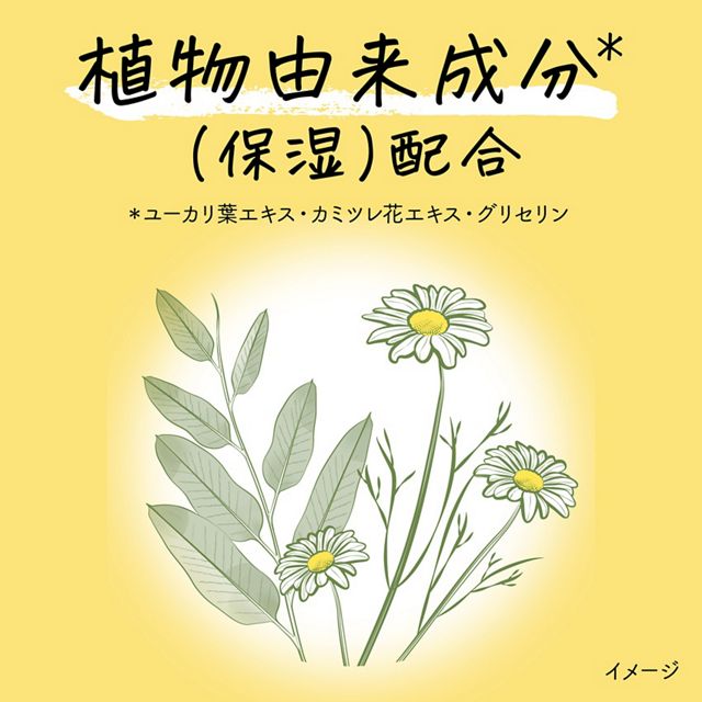 ● Contains plant-derived moisturizing ingredients* (**eucalyptus leaf extract, chamomile flower extract, glycerin)