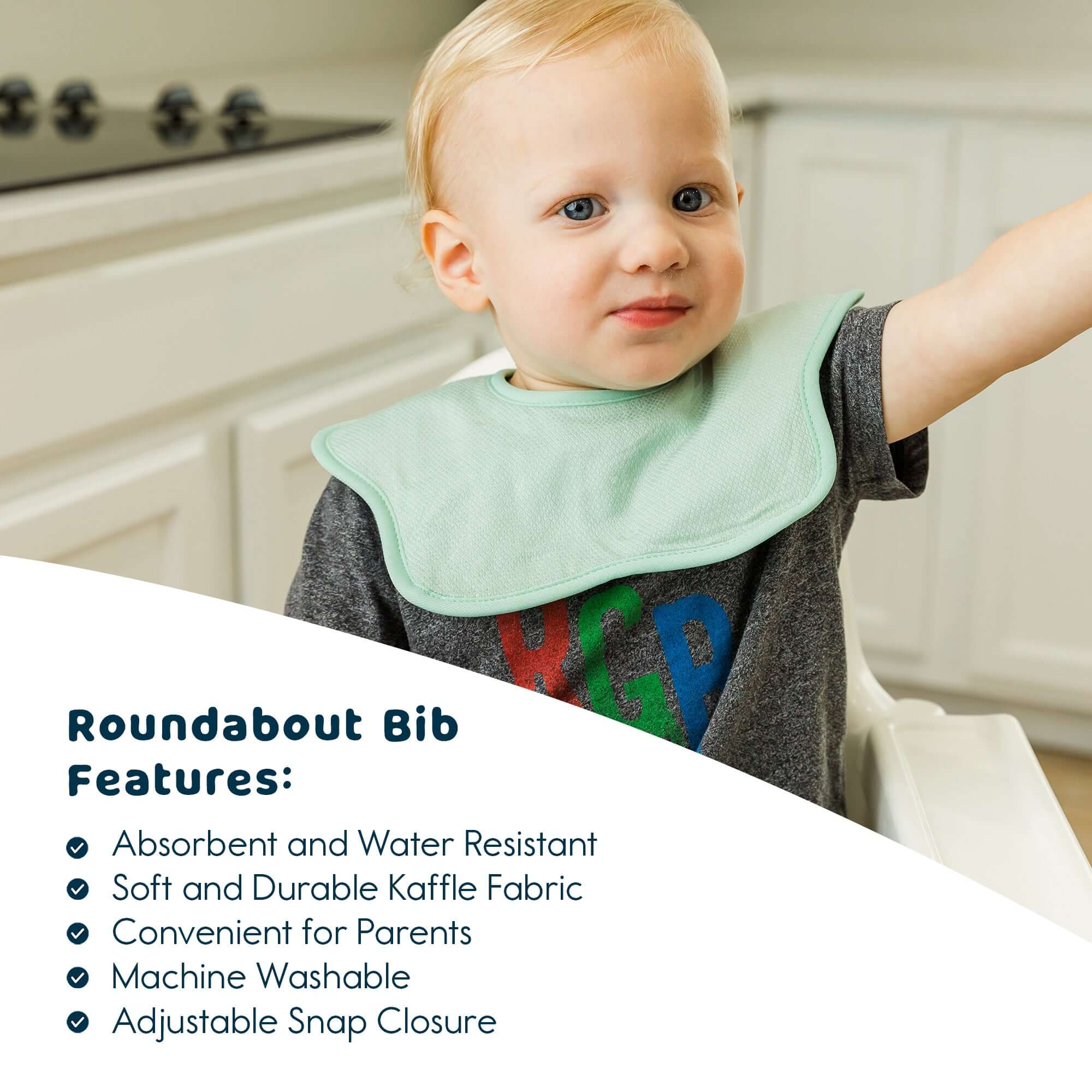 This set featuresthree soft, absorbent and water repellant, roundabout bibs. Versatile, roundabout design allows the bib to work for multiple feedings, simply rotate the bib to find a new clean spot once it gets messy!
