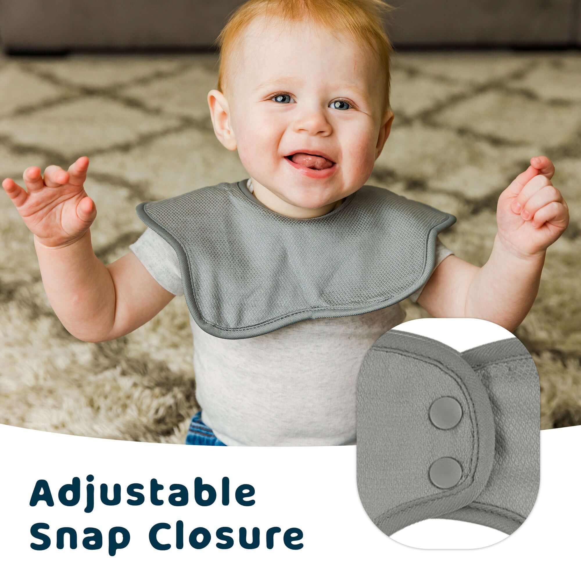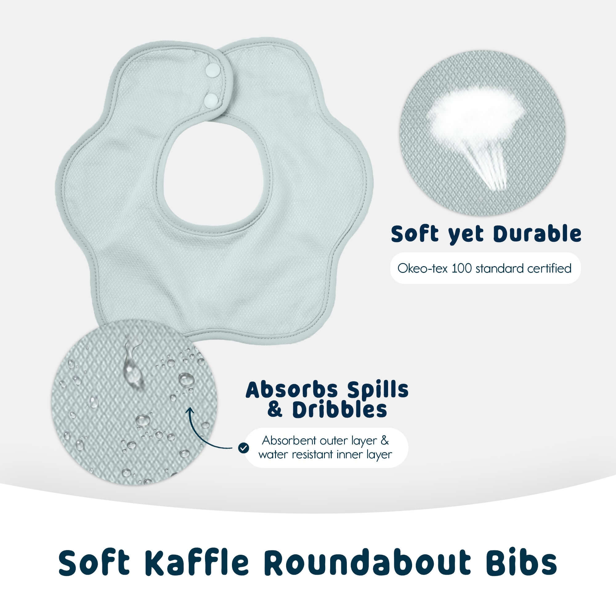 Our luxurious, silky-soft Kaffle weave fabric surrounds both an absorbent fleece and a waterproof inner layer.Messes are caught and prevented from reaching clothes or baby!