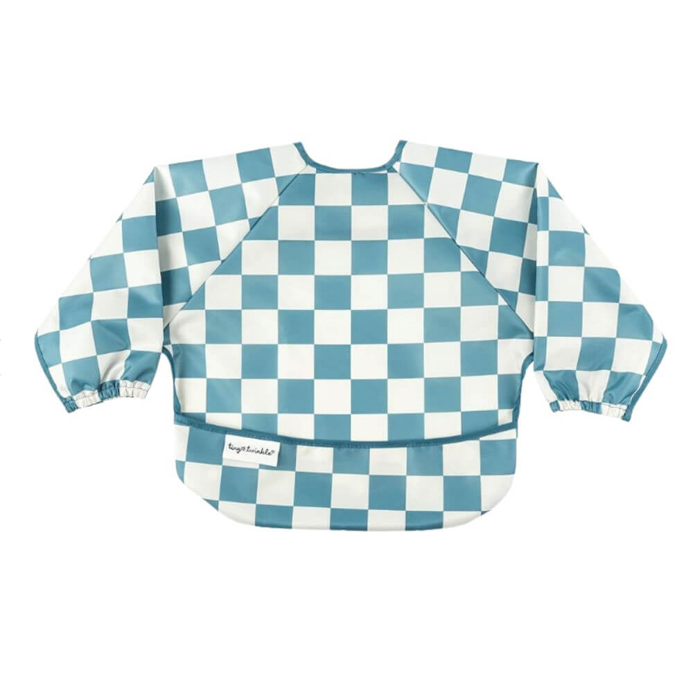 Tiny Twinkle - Mess-proof Long Sleeved Bib - Blue Checker
