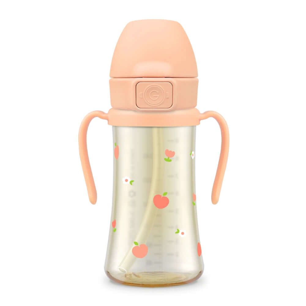 Grosmimi - PPSU Straw Cup With Steel Free One Touch Cap 300ml - Rose Coral
