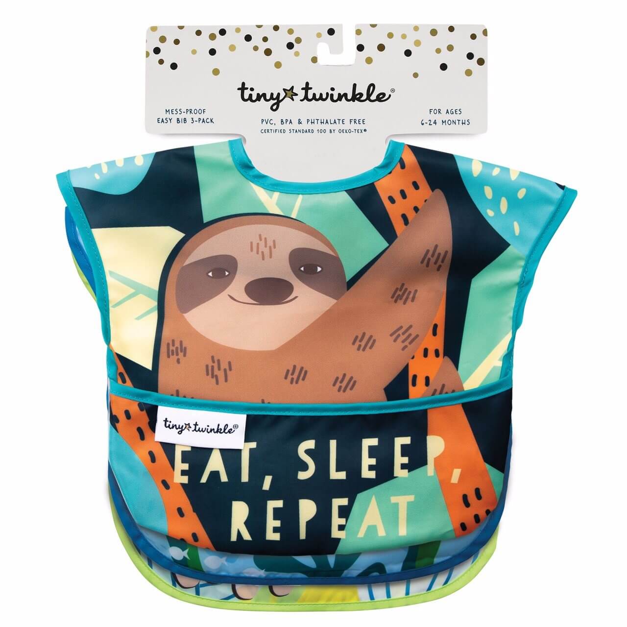 Tiny Twinkle - Mess - Proof Easy Bib 3 Pack - Llama, Sloth, & Shark Set