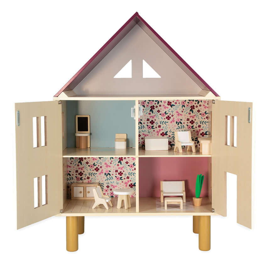 This modern 3-storey dolls house from Janod is beautifully decorated and comes with matching stylish furniture.