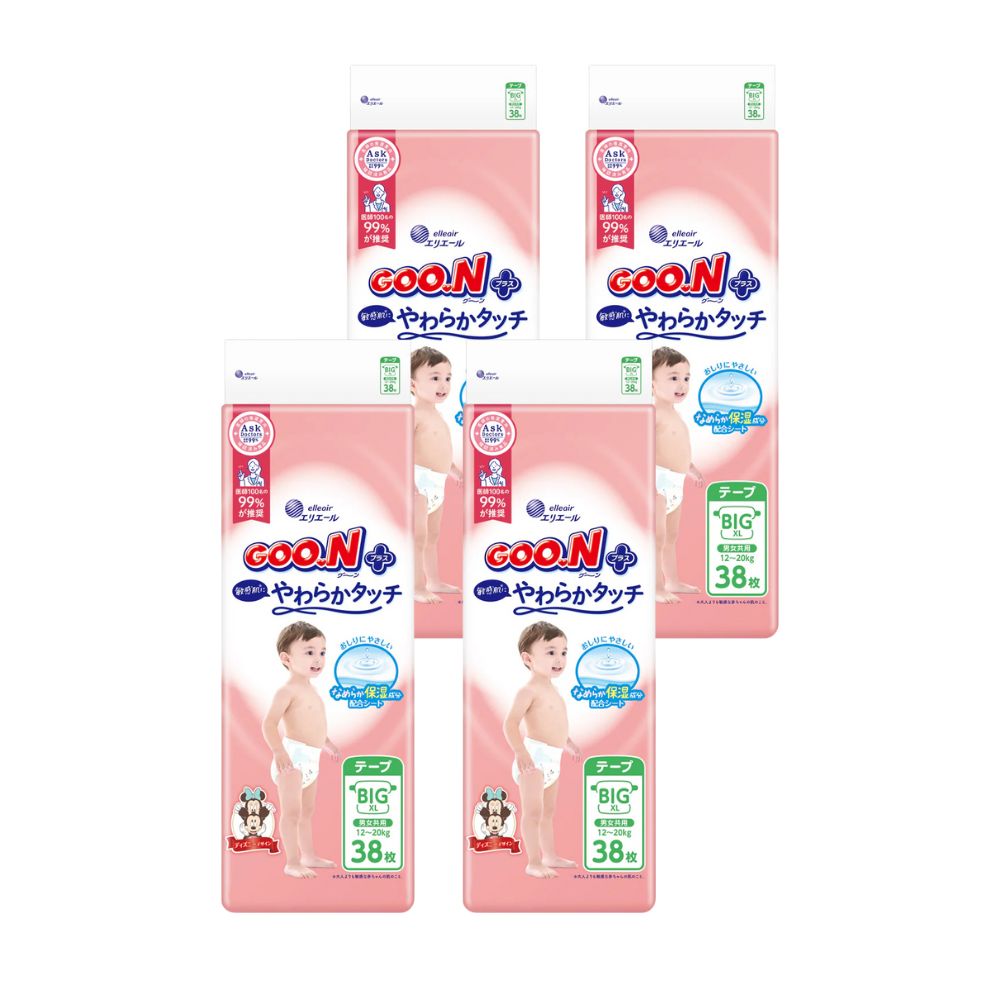 GOO.N Plus - Soft Touch for Sensitive Skin - Nappy Tape Size XL for 12-22kg - 38 pcs