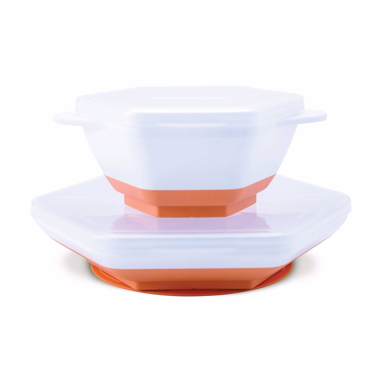 This 5 piece Transitional Feeding Set can be used for years to come! Featuring an interchangeable suction base that attaches to both plate and bowl. Simply remove the suction base when baby out grows the need for it!