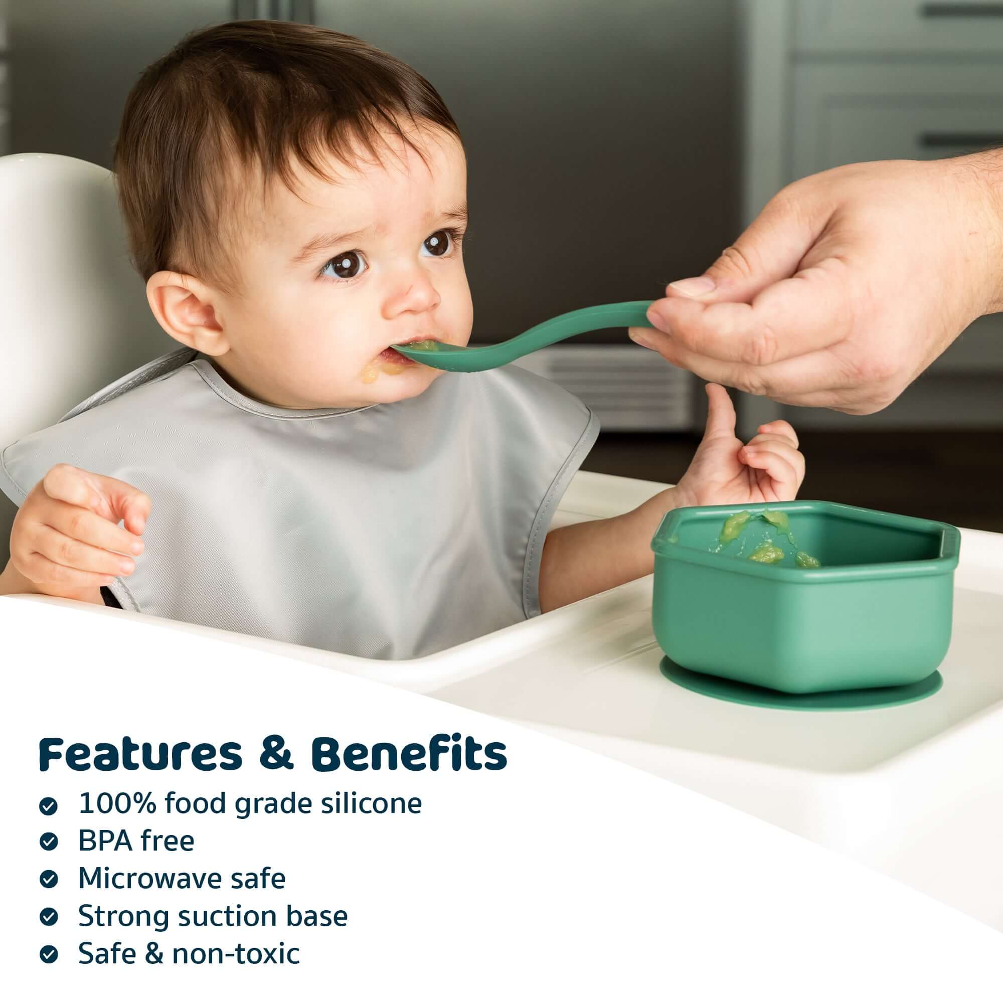 Tiny Twinkle - Silicone Suction Bowl and Lid Set - Olive Green