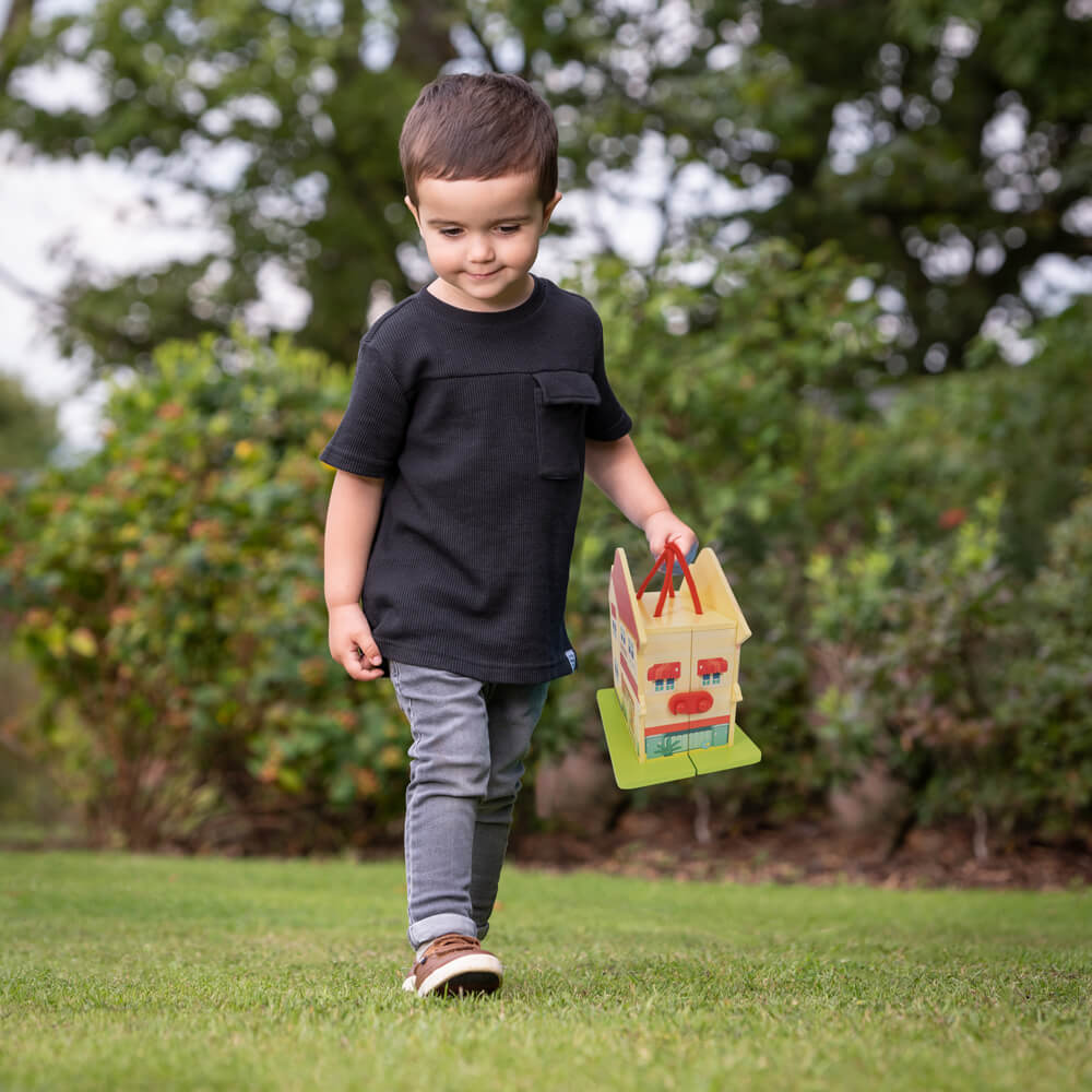 Resembling the iconic Heeler House from the show, this Bluey Carry Along House will allow little ones to transport Bluey and her family anywhere! This cleverly designed portable activity set features a 15 piece puzzle mat which provides the perfect surface for children to play out their own Bluey scenes with the six 3D figures. Decorate the puzzle mat with character and prop cut outs from the packaging. When finished, children can simply pack up and take the fun with them, making this a great gift idea for Bluey fans! The Bluey Carry Along House is made from responsibly sourced materials, the wooden products are certified by the FSC. Suitable for ages 3+.
