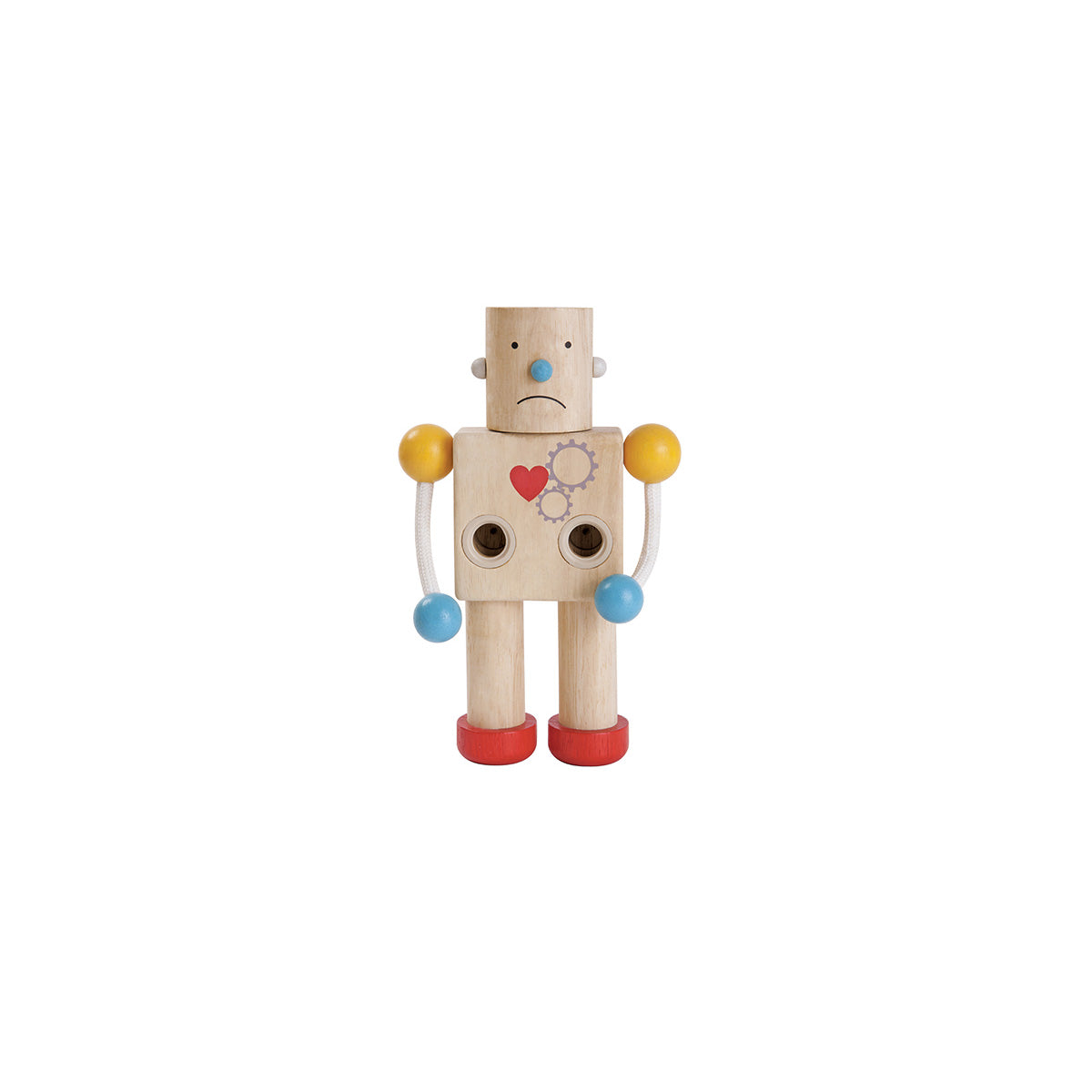 Robot comes with 4 geometric-shaped heads featuring the emotions of happiness, sadness, anger and surprise; with a range of textures to address sensory issues, from soft felt on the top of the sad head to raised bumps on the angry head. An element of sound is also incorporated into the surprised head - simply press the button at the top of its head and a squeaking sound is emitted!