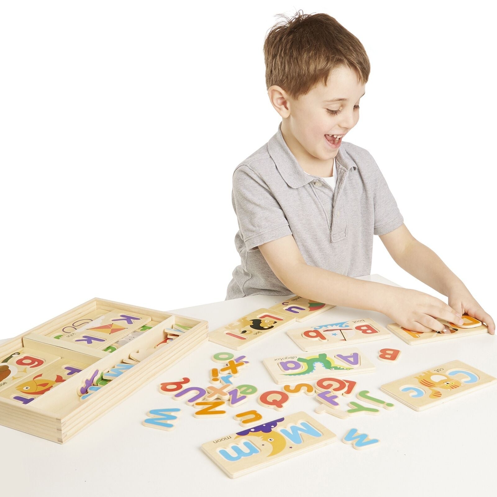 These adorably illustrated boards are a great way to work on letter and word recognition; a child simply picks a board--the first letter of his or her name is always a good place to start--then fills in the uppercase and lowercase letters and identifies the picture. He or she can turn it over or take another board and do it all again. With so many letters (each letter in the alphabet in both uppercase and lowercase), children can find infinite ways to play!