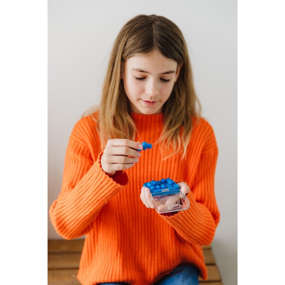 A pocket-size IQ puzzle ready to take with you wherever you go. Create your own challenges by moving the blockers and fill the board with your puzzle pieces. Select your favourite colour, and challenge yourself, friends, and family for even more fun! Find extra challenges, hints, and all solutions online! Where will you be playing?