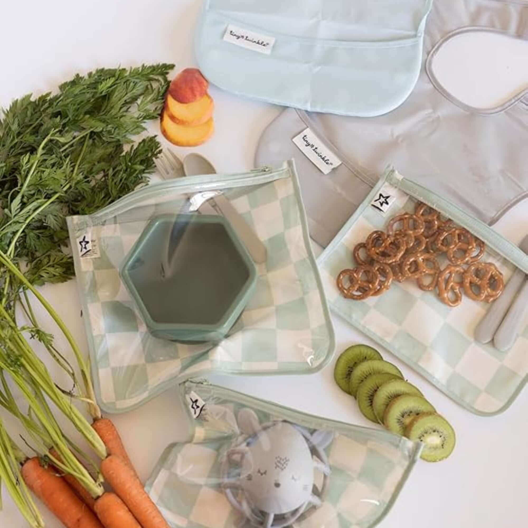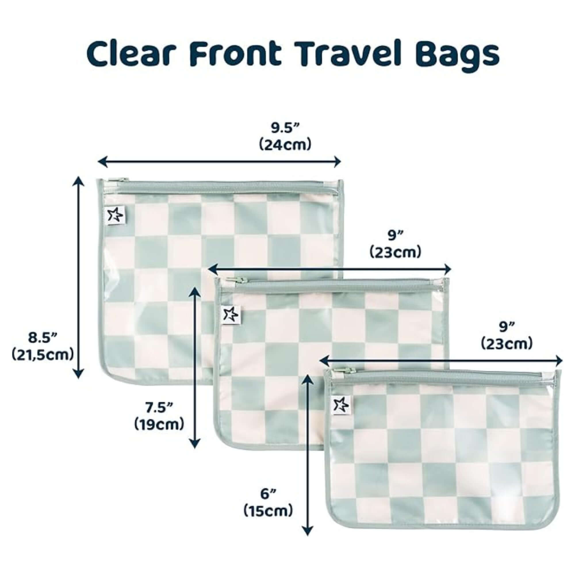 Tiny Twinkle - Clear Travel Bags - 3 Pack Sets - Sage Checkers