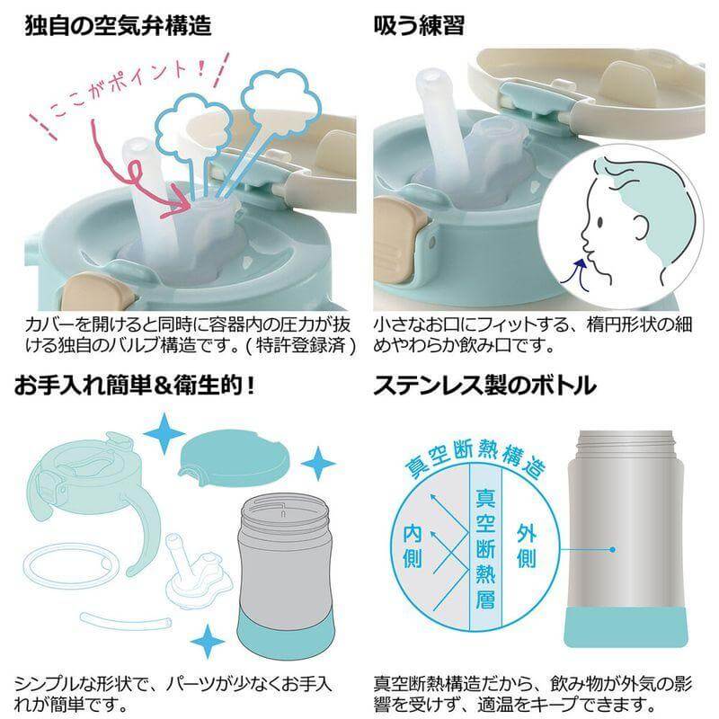 The mug parts can be replaced, so you can smoothly step up from straw mugs to drinking cups.