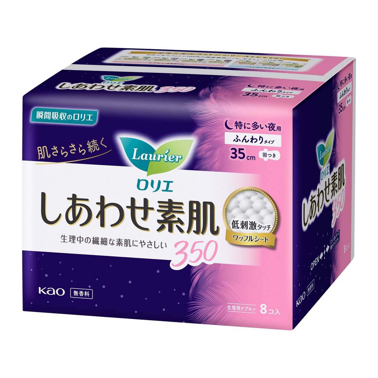 KAO Lauríer - Sanitary Napkins - Happy Bare Skin Especially for night use 35cm with wings 8 pieces