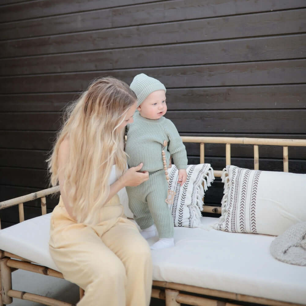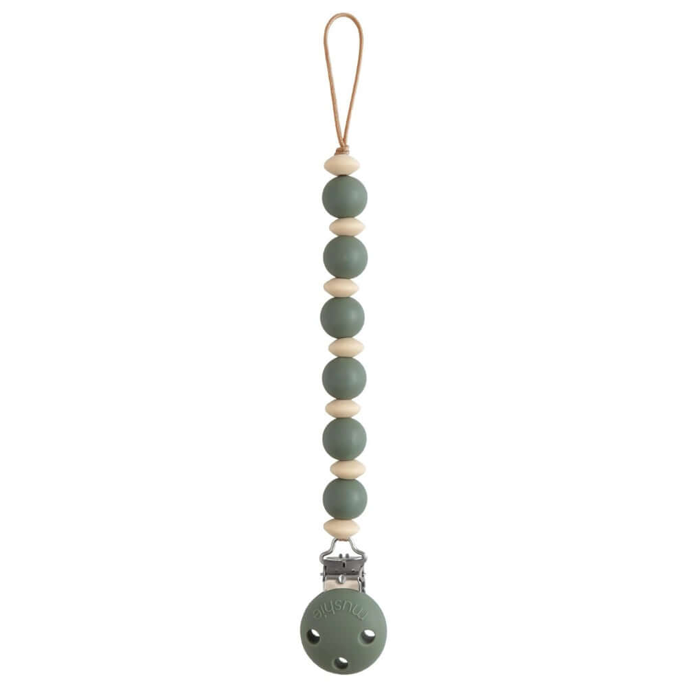 The Mushie silicone pacifier clip offers durability, function and simplicity to families on-the-go. Made from 100% food-grade silicone, our clip features a silicone clasp that brings a modern take to a traditional favorite. With two sizes of beads stacked in a simple pattern, the Luna clip is sure to become a favorite accessory for parents and littles alike. The clip is easy to clean and helps keep soothing items in reach for little ones.