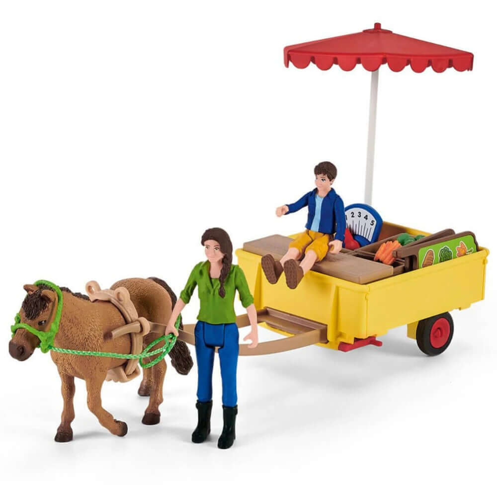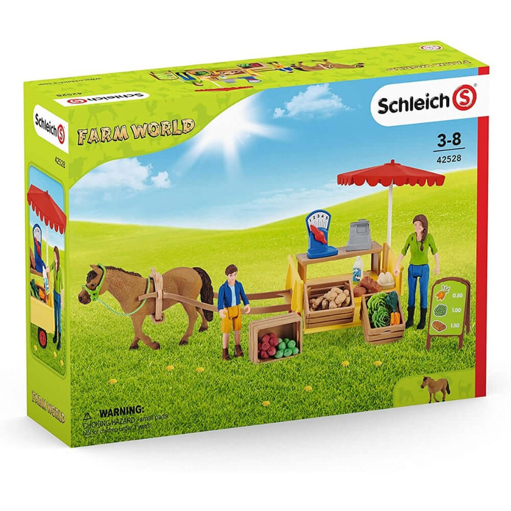 · PART OF A GROWING PLAY WORLD. The Sunny Day Mobile Farm Stand is part of the Farm World collection of figurines and playsets from Schleich. Great for gifting, this playset can stand alone or fit into a larger, modular play world.