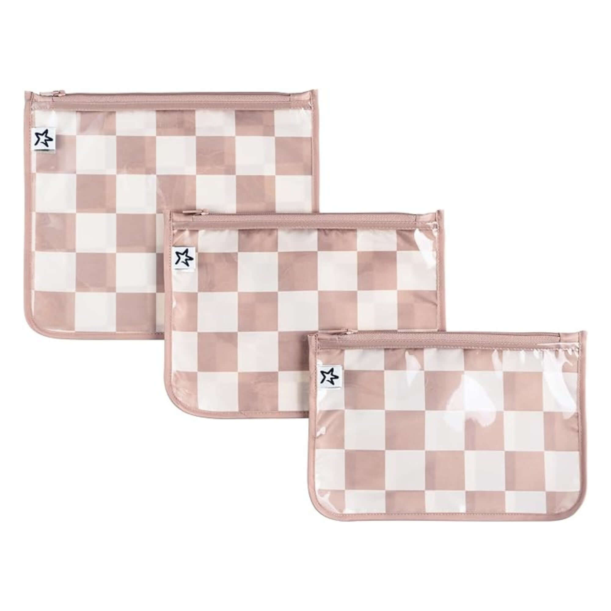 Tiny Twinkle - Clear Travel Bags - 3 Pack Set - Beige Checkers